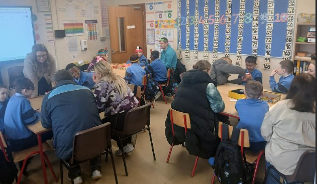 In December, our teachers welcomed parents and children into the hall to take part in making Christmas Cards. This was a hugely successful event and was organised by Anthony, our Home School Community Liaison teacher. It was a very memorable day for parents, pupils and teachers alike.